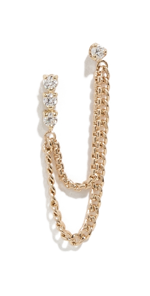 This earring is sold as a single, not a pair Double stud design. F-G round diamond (0.12 ct). Rated for SI1-SI2 clarity.. 14k gold. Post closure. Made in the USA. Measurements: Length: 1in / 2.5cm