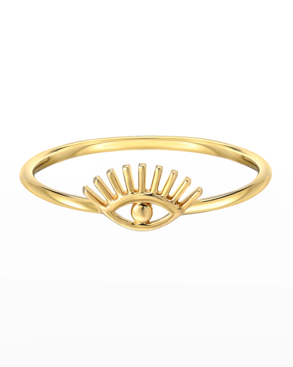 Zoe Lev Jewelry eyelash evil eye ring. Polished 14karat yellow gold hardware. Evil eye silhouette with eyelashes. Made in USA.