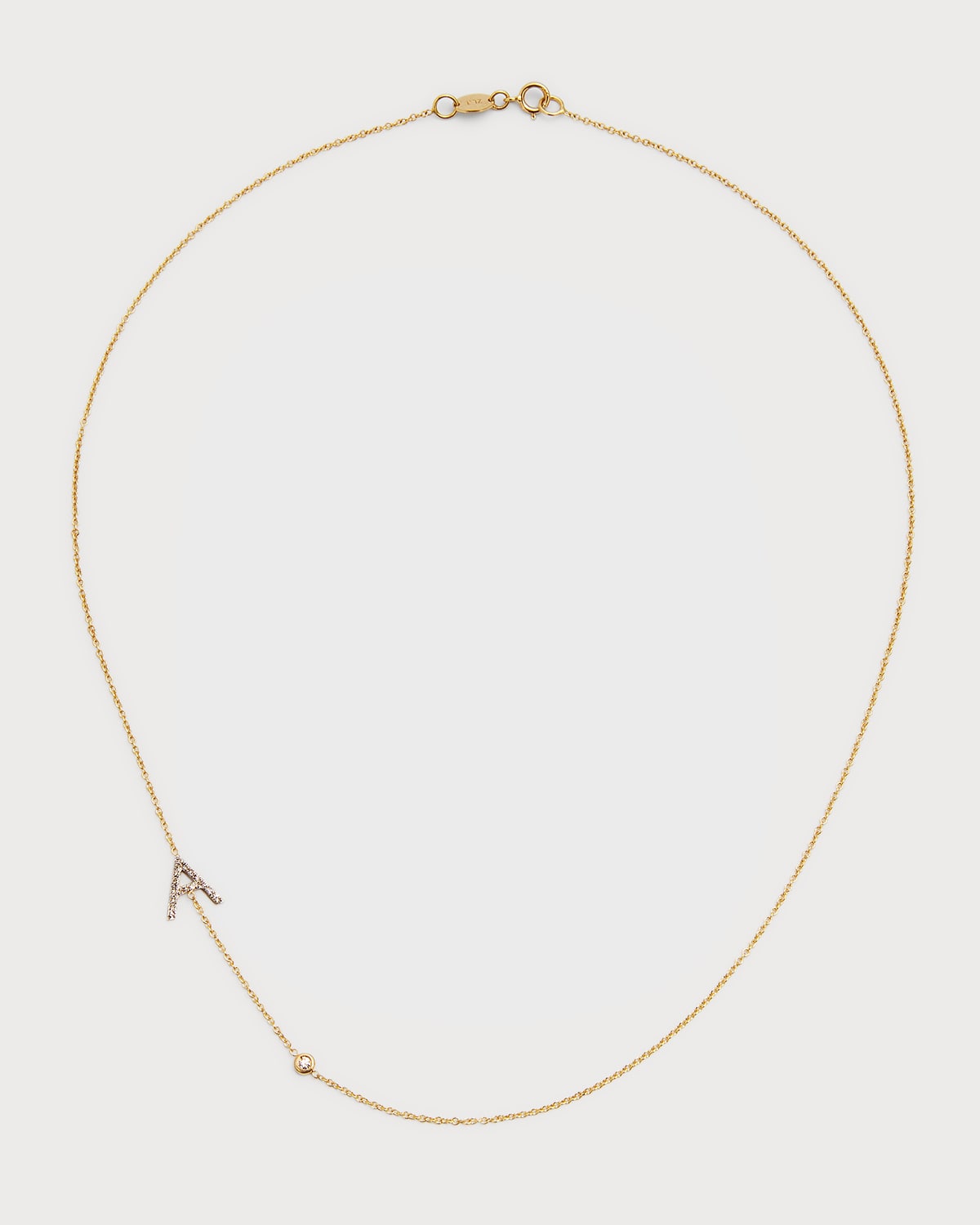 14k Yellow Gold Personalized 0.14ct Asymmetric Diamond Initial & Bezel Necklace