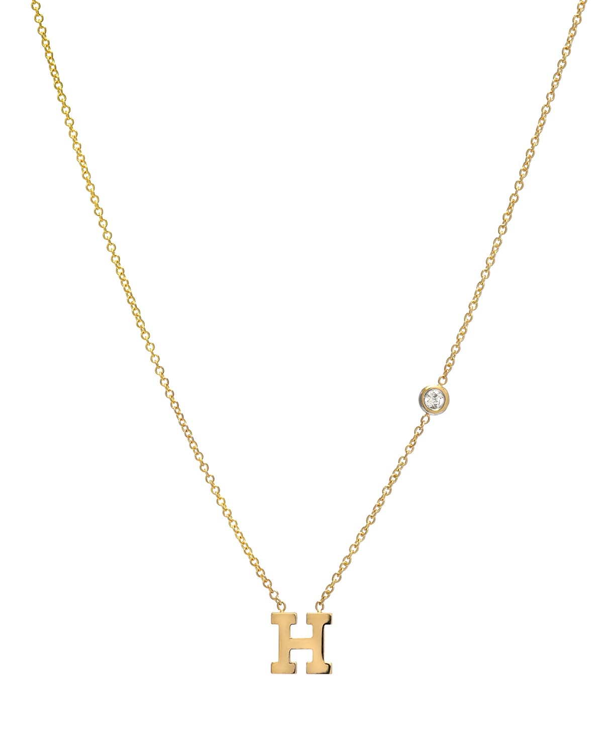 Necklace by Zoe Lev Jewelry. 14karat yellow gold. Initial pendant with diamond bezel. 0.04 total diamond carat weight. Approx. 16"L.