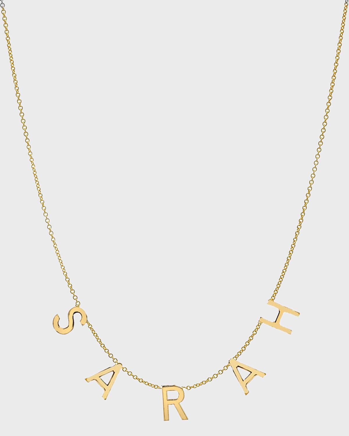Fiveinitial necklace from Zoe Lev Jewelry. 14karat yellow gold chain and hardware. You choose five capital letters. Spring ring clasp. Approx. 16"L. Made in USA.