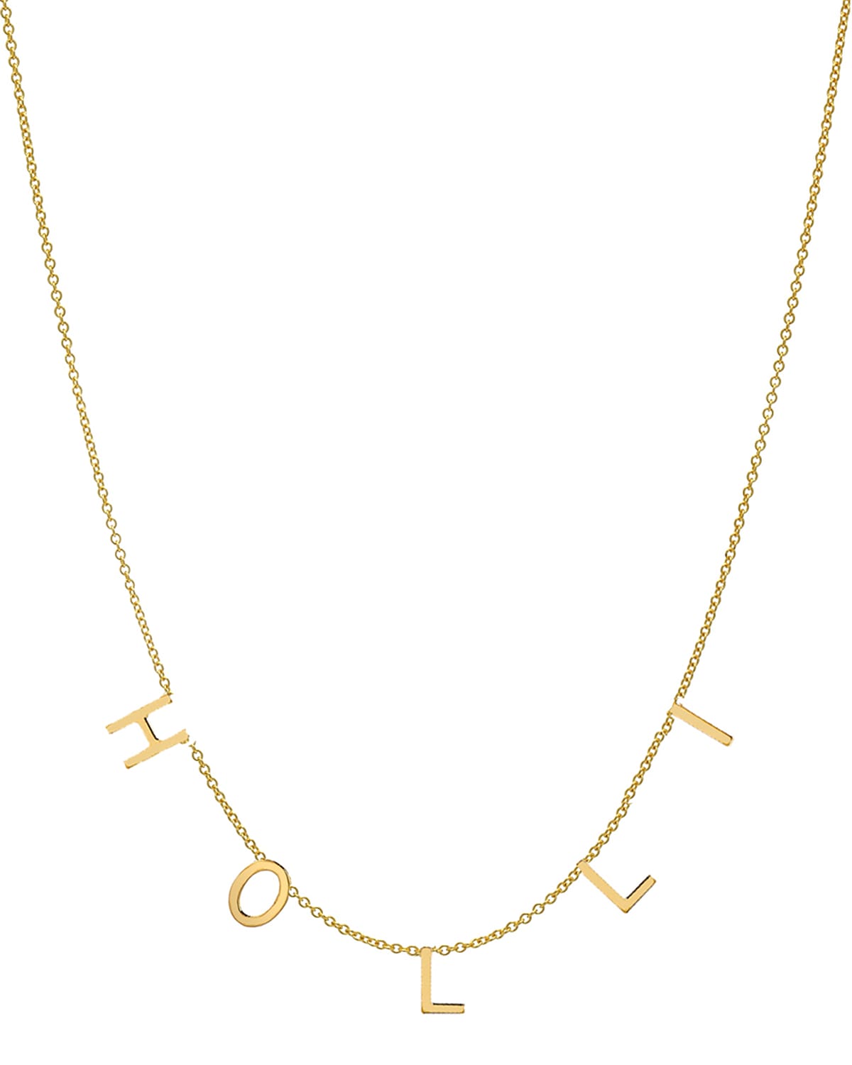 Mini fiveinitial necklace from Zoe Lev Jewelry. 14karat yellow gold chain and hardware. You choose five capital letters. Spring ring clasp. Approx. 16"L. Made in USA.
