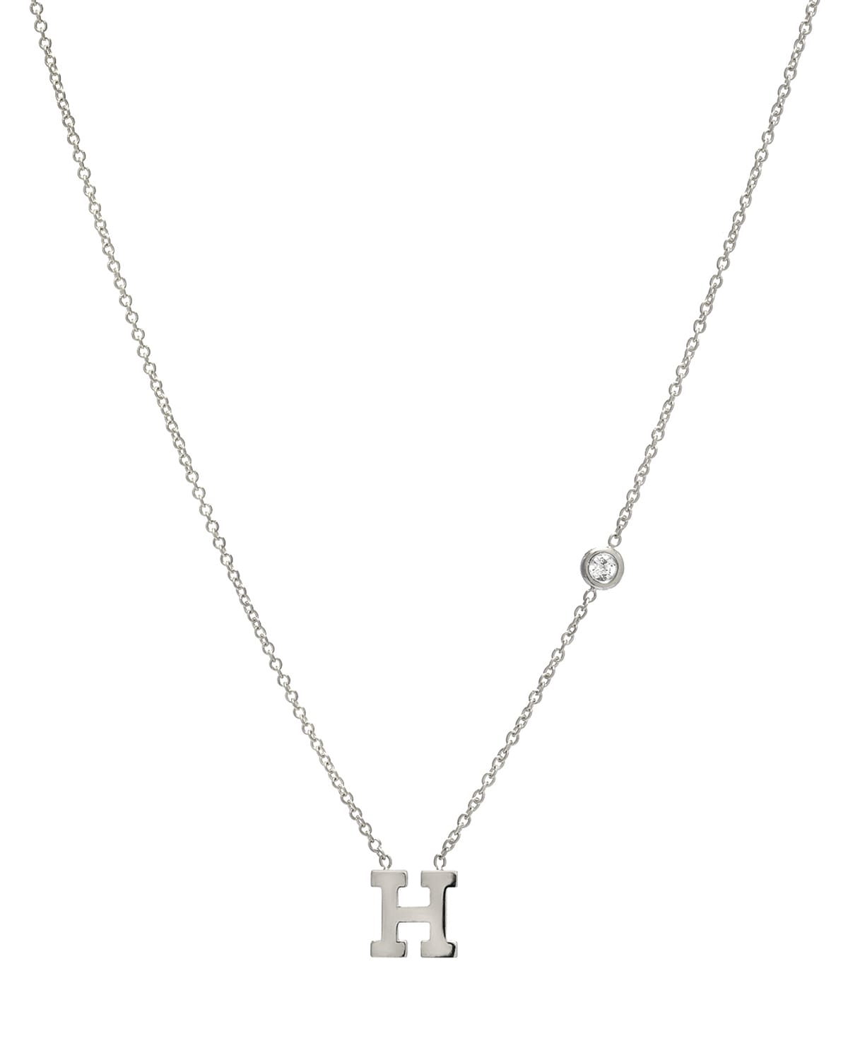 Necklace by Zoe Lev Jewelry. 14karat white gold. Initial pendant with diamond bezel. 0.04 total diamond carat weight. Approx. 16"L.